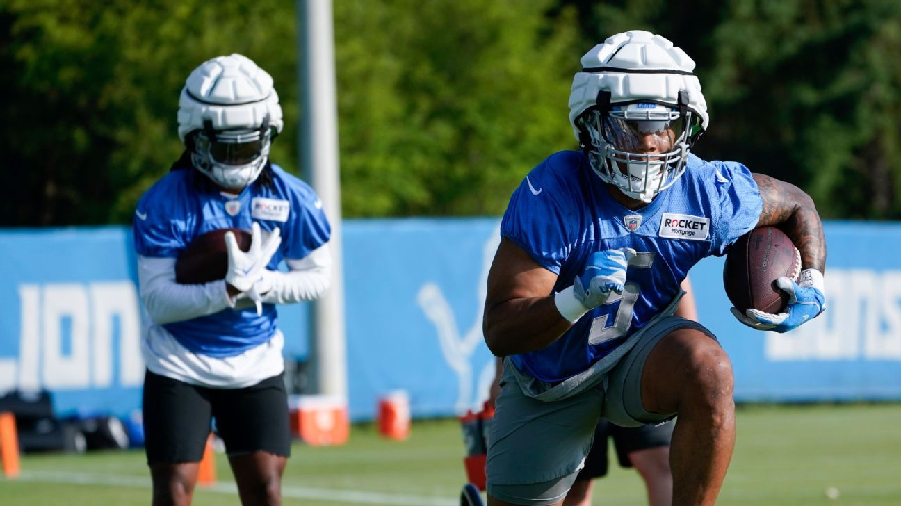ALLEN PARK, Mich. -- After a complete revamp of the Detroit Lions backfield, coach Dan Campbell envisions a "two-headed monster" at running back with veteran David Montgomery and rookie Jahmyr Gibbs.