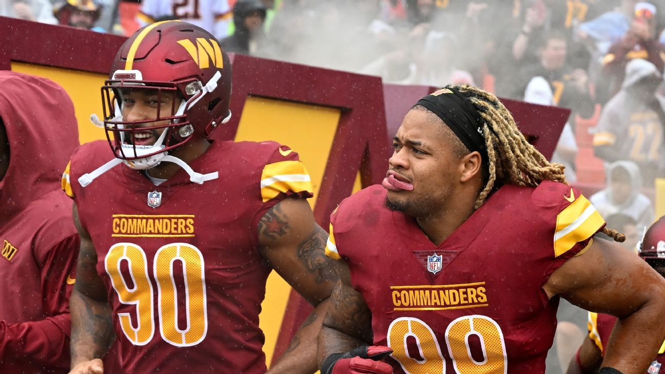 Other players also are in the last year of their contract and could bring back draft compensation if Washington gets aggressive in the next 24 to 48 hours ahead of Tuesday's 4 p.m. ET trade deadline. Players on the last year of their contracts include quarterback Jacoby Brissett, running back Antonio Gibson, wide receiver Curtis Samuel, linebacker Cody Barton and cornerback Kendall Fuller.
