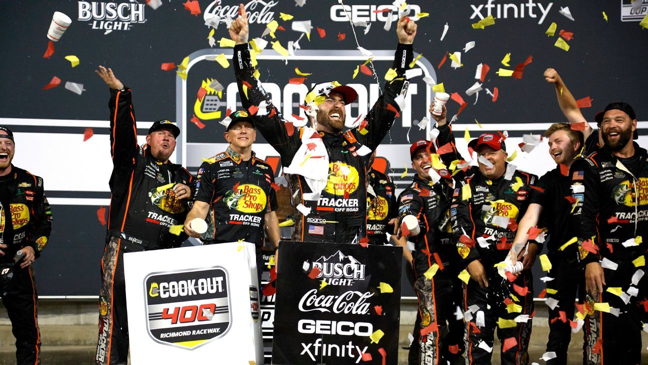 Dillon raced and bumped his way to victory Sunday night, sending Joey Logano into a spin on the final lap to win in overtime at Richmond. It was his first win since Aug. 28, 2022, at Daytona. He had just two top-10 finishes this year and entered the race ranked 32nd in the standings. Now he's on track for the playoffs -- but he didn't get there gently.