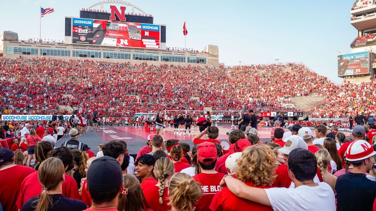 Then the Nebraska volleyball squad ran out onto the field and the court that had been built on the northern side of the legendary stadium, which opened in 1923.
