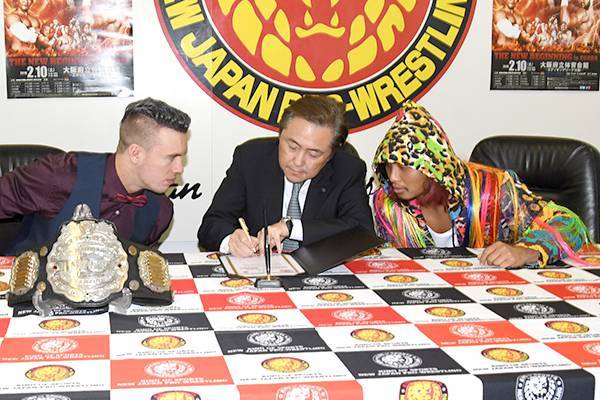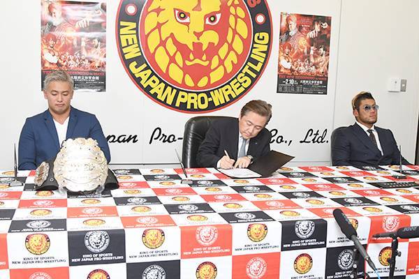 En las oficinas de NJPW en Tokio, tuvo lugar la conferencia de prensa en donde se llevó a cabo la firma de contratos para los encuentros titulares del magno evento “The New Beginning in Osaka“.