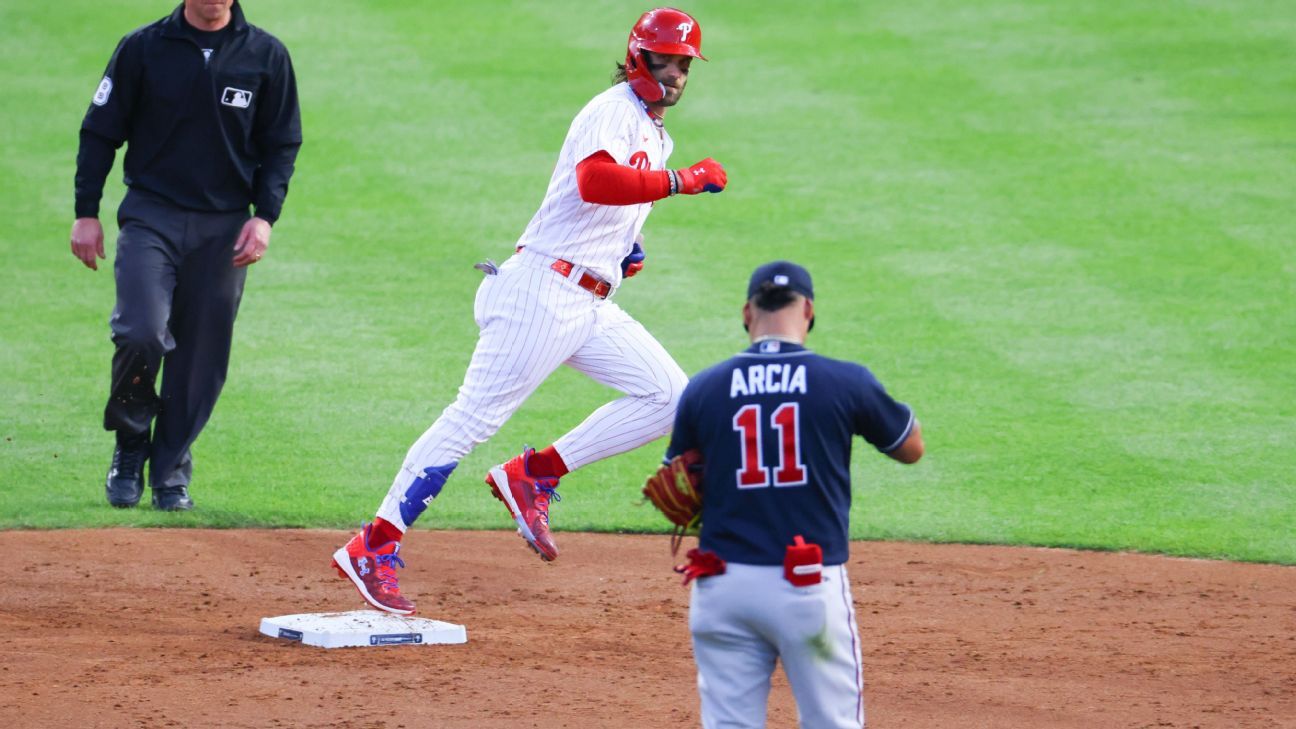After Braves shortstop Orlando Arcia was overheard in the clubhouse mocking Bryce Harper's baserunning in Game 2, the Phillies superstar responded with two home runs in Philadelphia's Game 3 rout -- and stared down Arcia both times he rounded the bases.