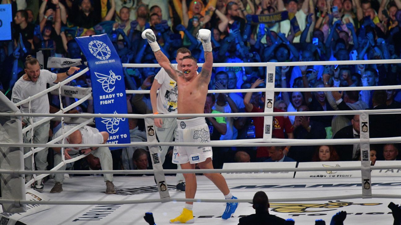 Usyk, el boxeador número 3 libra por libra de ESPN, peleará contra Tyson Fury por el campeonato indiscutible de peso pesado este invierno en Arabia Saudita. La pelea está planeada tentativamente para el 23 de diciembre, pero no tendrá una fecha fija hasta que Fury se enfrente a Francis Ngannou el 28 de octubre en ESPN+ PPV.
