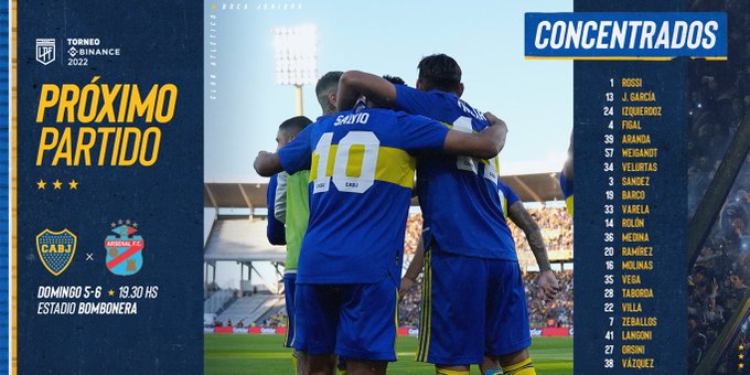 Esta es la formacin para enfrentar a Arsenal.#DaleBoca #TorneoBinance pic.twitter.com/45M0jCDQNM