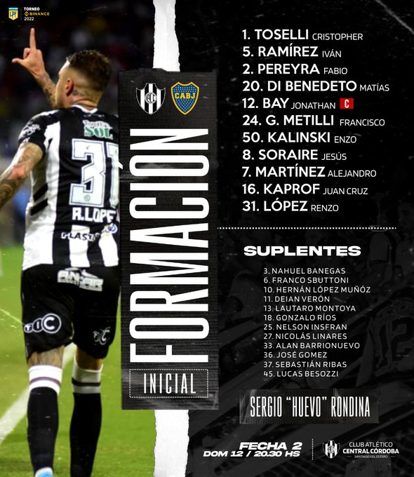 Esta es la formacin para enfrentar a Central Crdoba.#DaleBoca #TorneoBinance pic.twitter.com/OXqpvTUs2f