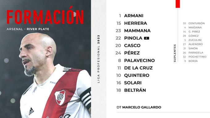 Los convocados para visitar este mircoles a Arsenal por la fecha 14 de la LPF#VamosRiver pic.twitter.com/prdbdj0kaZ