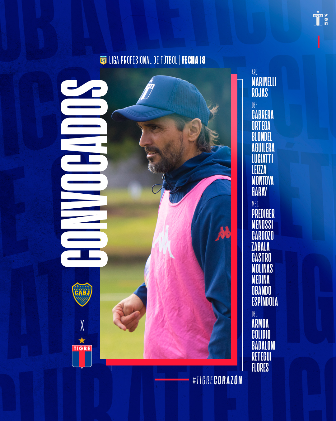 La lista de citados por Diego Martnez para visitar a Boca Juniors, por la fecha 18 del #TorneoBinance#TigreCorazn pic.twitter.com/9TjCxbtPK1