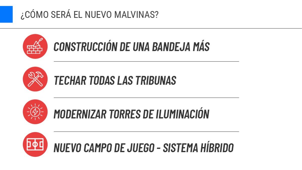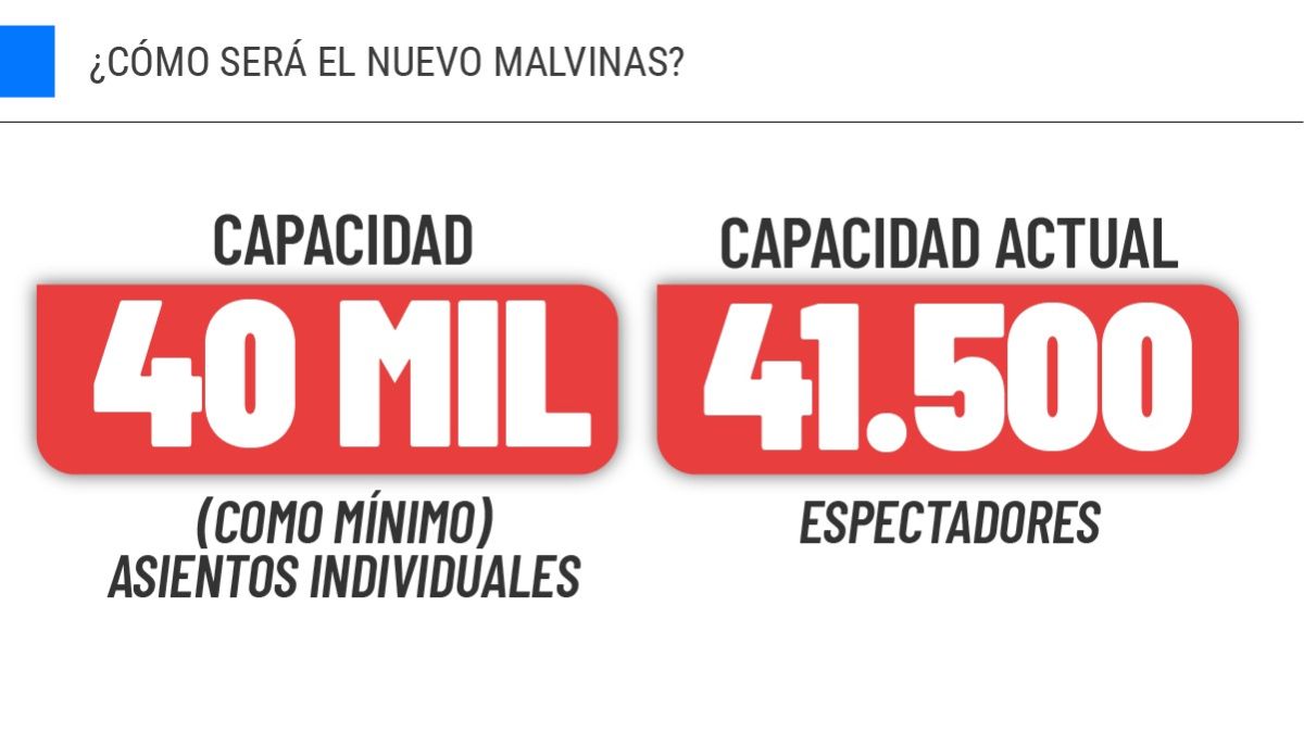 Luego agregó que "esto se traduce en que hay que poner butacas en las populares (Norte y Sur), esto reduce la cantidad de espectadores ahí, y entonces hay que agregar una bandeja para llegar a ese mínimo imprescindible de 40 mil personas sentadas que exige FIFA".