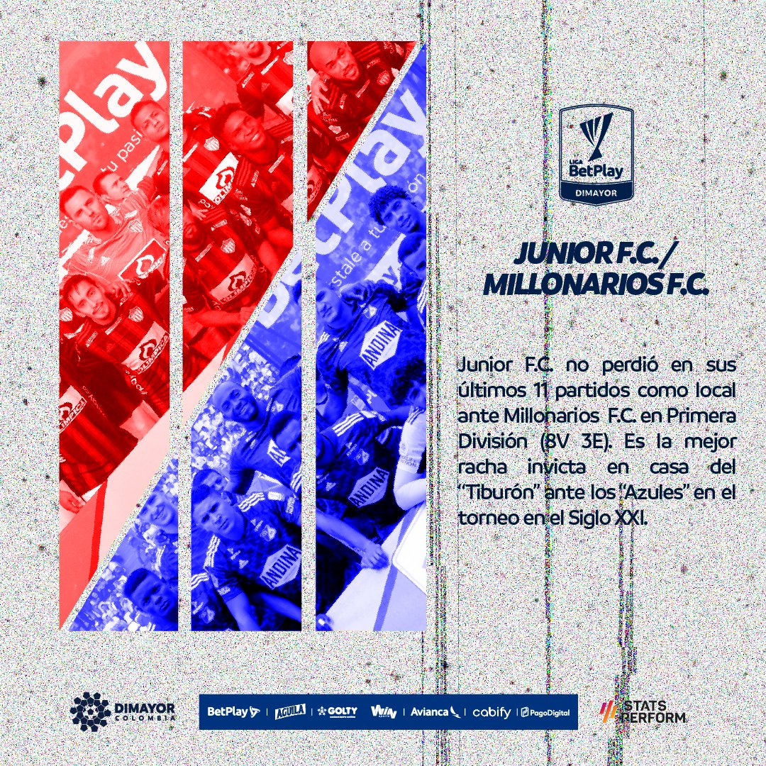 ¡Impresionante! La cuenta oficial de la Liga Betplay comparte este dato previo al Millonarios vs. Junior.
