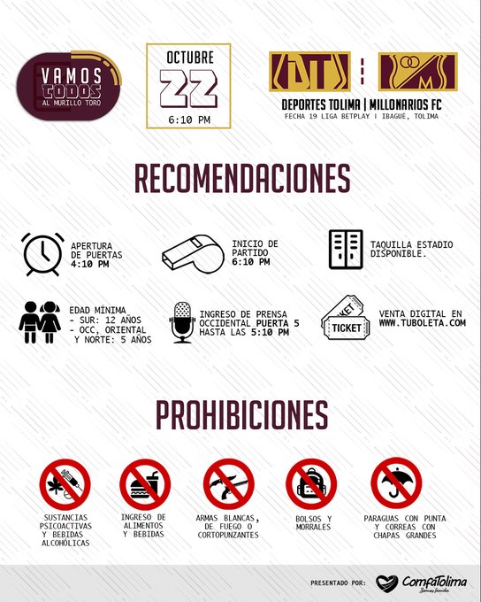 Atención a las recomendaciones para asistir al Estadio Manuel Murillo Toro.