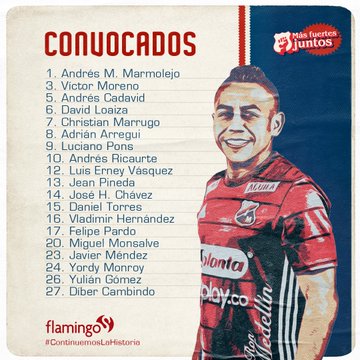 [] Estos son nuestros titulares y suplentes para esta noche, presentados por @Tigo_Colombia #MsFuertesJuntos pic.twitter.com/noDwvQie6T
