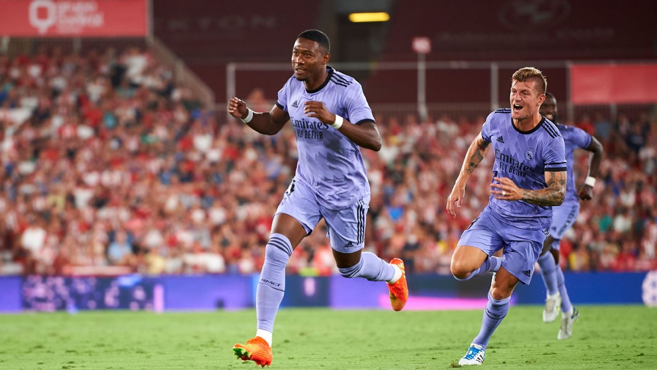 David Alaba said Carlo Ancelotti told him he'd score a free kick winner for Real Madrid, moments before stepping onto the pitch to dispatch the set piece that gave the LaLiga champions a 2-1 win at Almeria in their first game of the season.