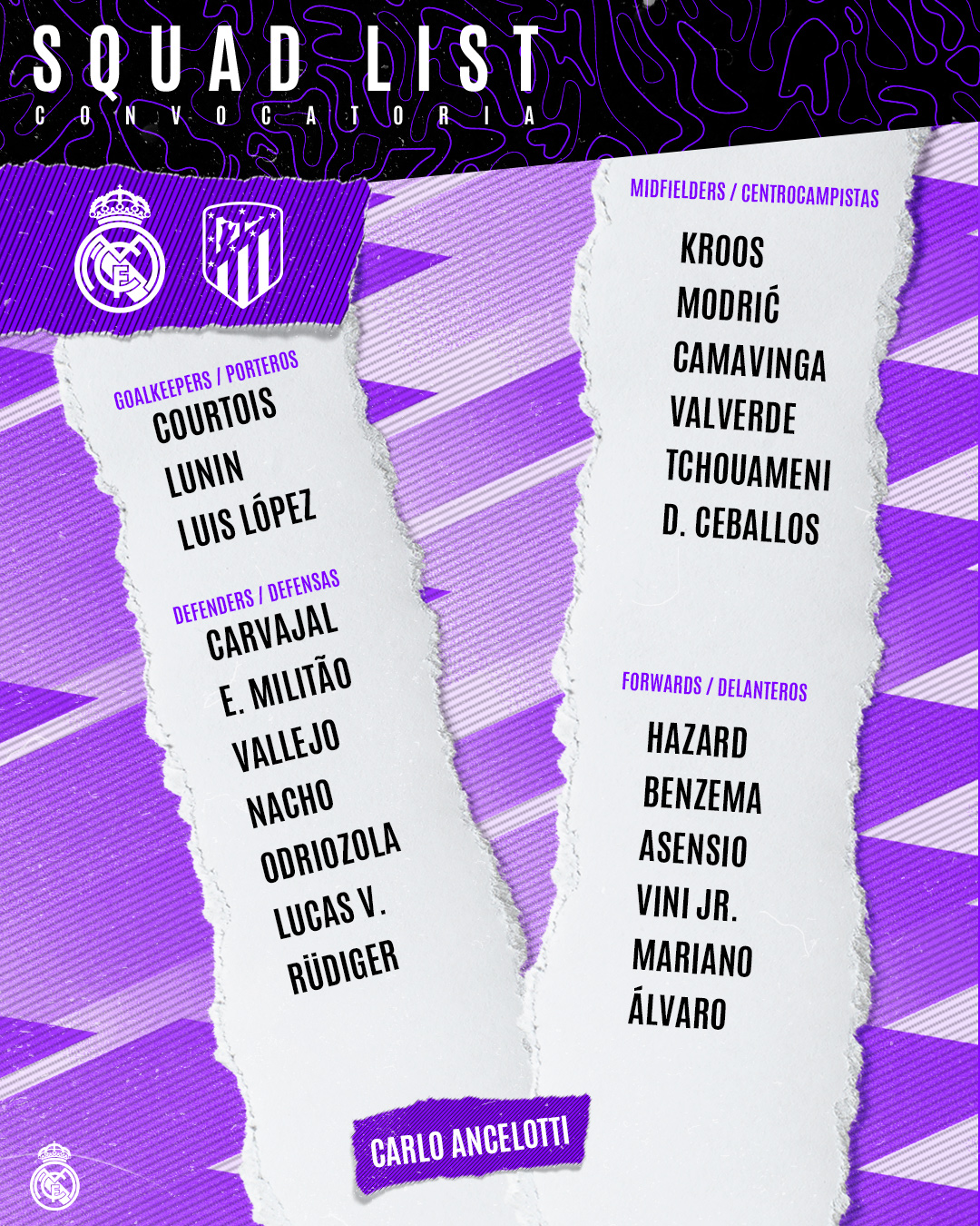 Nuestros convocados para el partido @Atleti!#RealMadridAtleti pic.twitter.com/bSRPN29Ebg