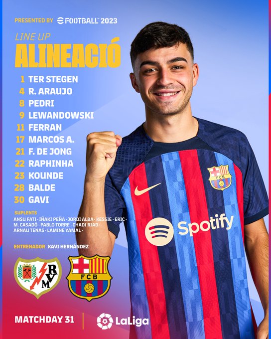 FC Barcelona: Ter Stegen, Koundé, Araujo, Alonso, Balde, Busquets, De Jong, Pedri, Gavi, Raphinha, Lewandowski.