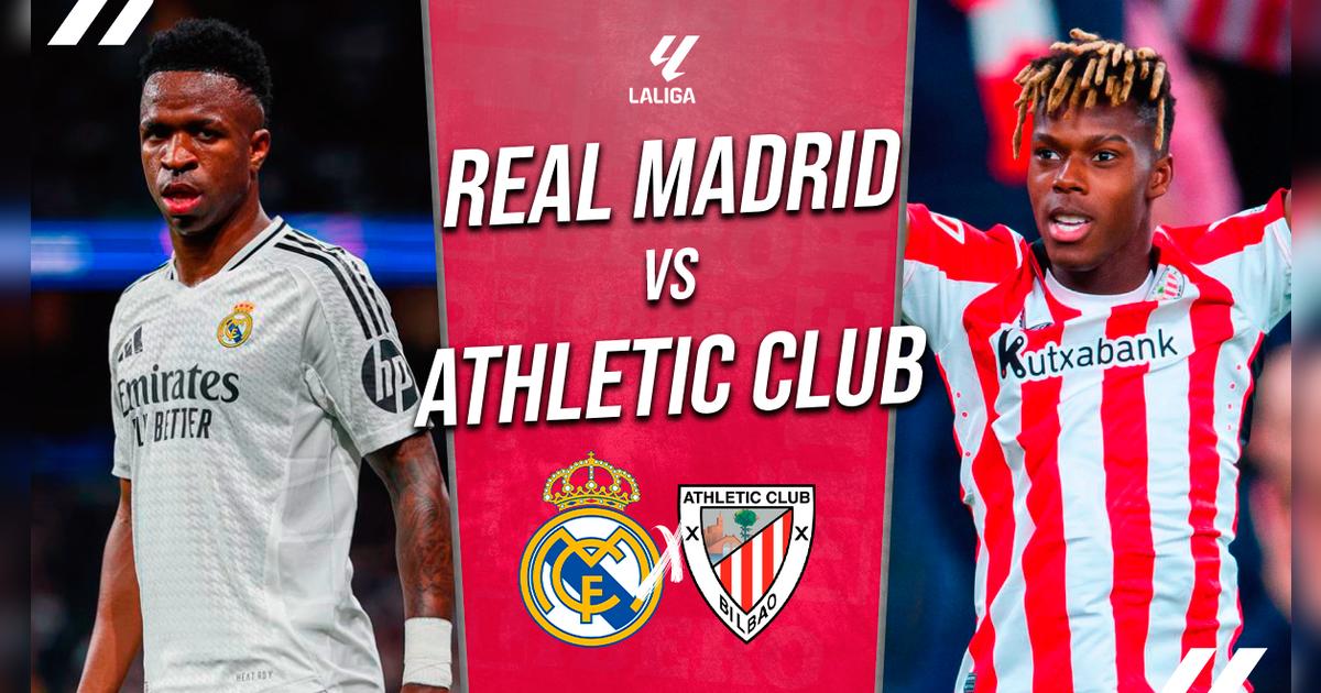 Este domingo 20 de abril continuán las emociones de LaLiga EA Sports 2024-25 con el partido entre Real Madrid vs. Athletic Club, válido por la fecha 32 del campeonato desde el mítico Estadio Santiago Bernabéu, a partir de las 14:00 horas de Perú, con transmisión EN VIVO vía DSports y DGO. donde se podría definir el destino del cuadro 'Blanco' en su lucha por el título. Entérate de todos los detalles del cotejo.