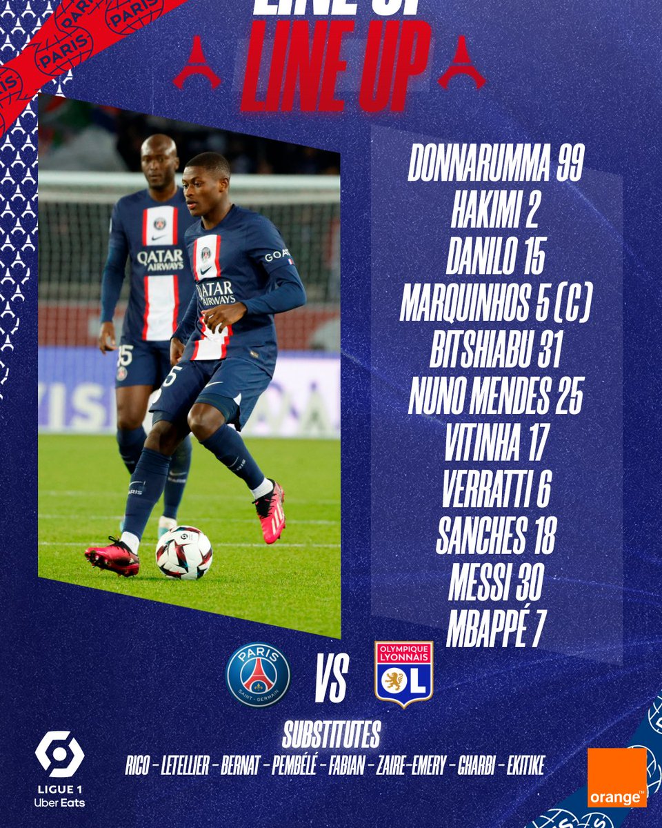 PSG: Donnarumma; Achraf, Danilo, Ramos, Marquinhos, Nuno Mendes; Verratti, Vitinha, Fabián; Messi, Mbappé.