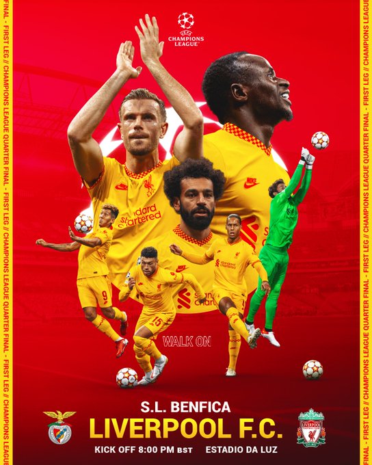 Quarter-final time as we take on @SLBenfica #WalkOn | #SLBLIV pic.twitter.com/EMmmoDddJE