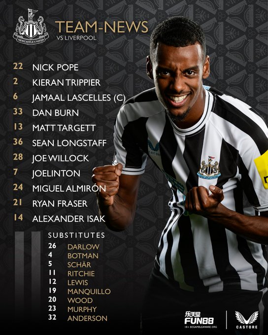 Newcastle: Pope; Trippier, Schar, Botman, Burn; Willock, Longstaff, Joelinton; Almirón, Wood, Fraser.
