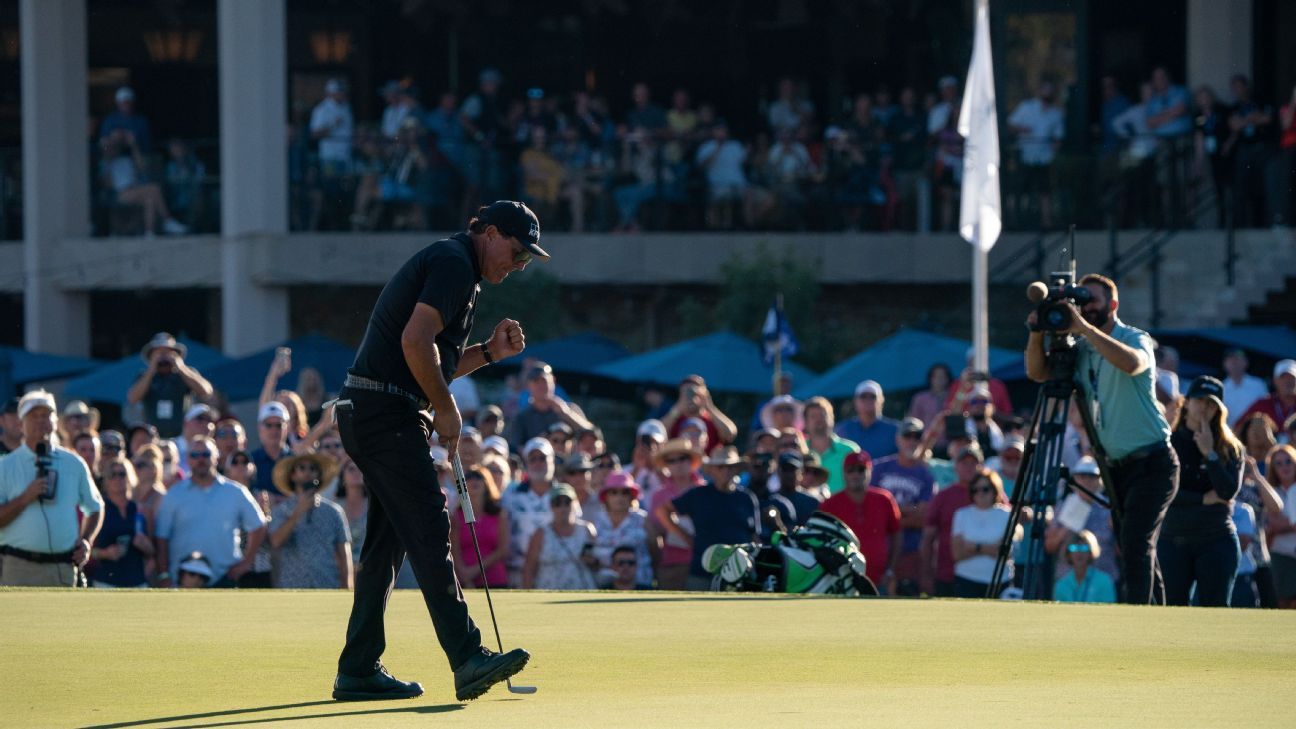PHOENIX -- Phil Mickelson stood on the 18th green at Phoenix Country Club, a wide smile across his face as he held yet another PGA Tour Champions trophy.