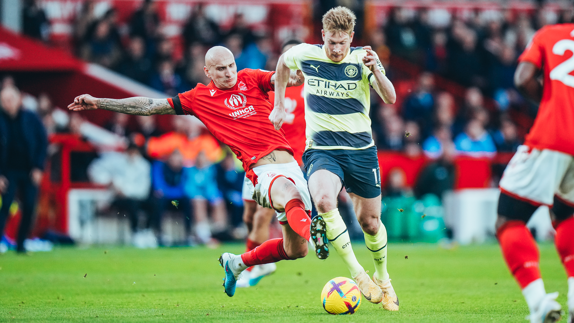 Kevin De Bruyne and Aymeric Laporte, who started in Saturday's match against Nottingham Forest, did not travel with the team. John Stones, injured since the victory over Arsenal in the FA Cup, also did not travel.