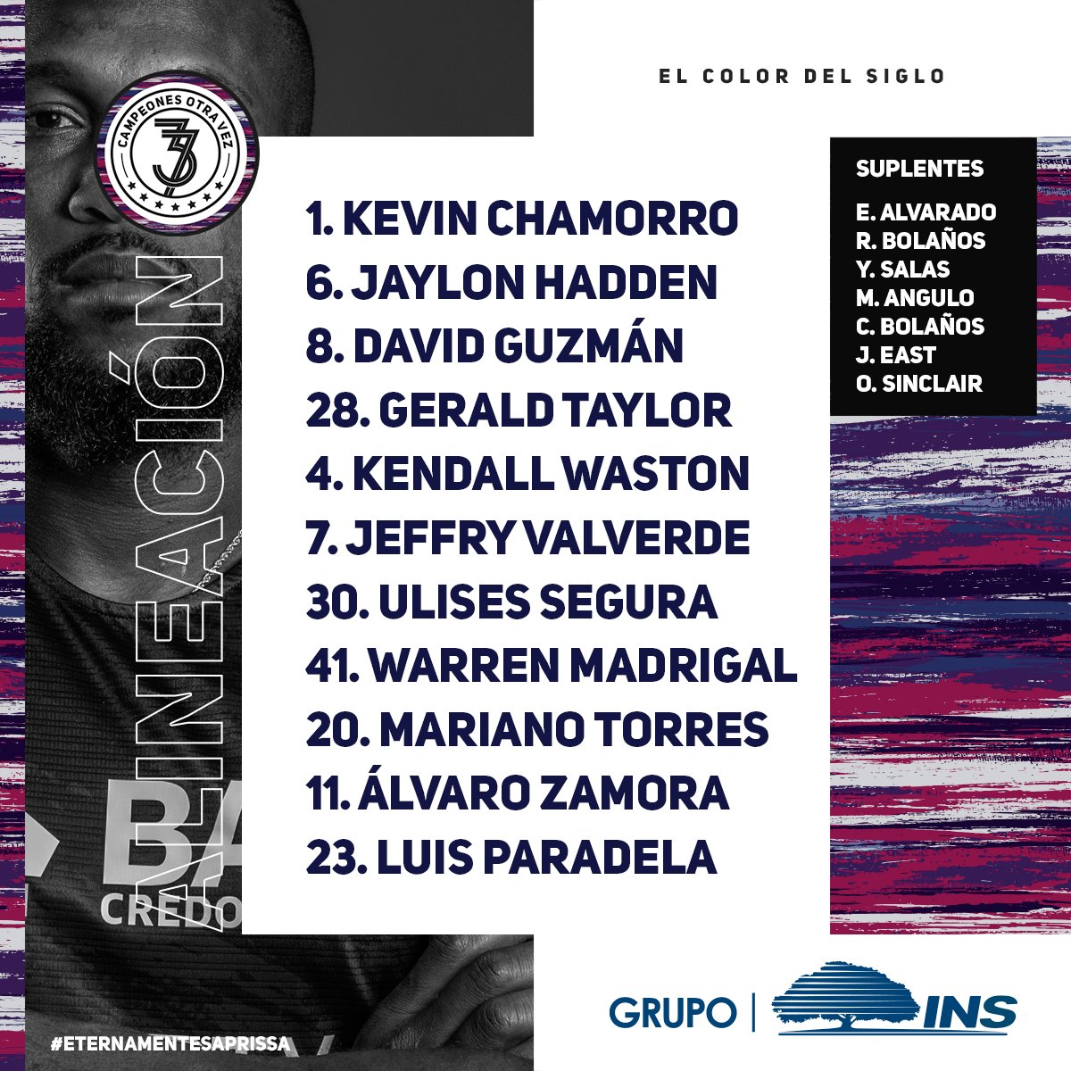 Saprissa: Alvarado, Arboine, Taylor, Torres; Guzmán, Valverde, Segura, Hadden; Zamora, Madrigal y Rodríguez.