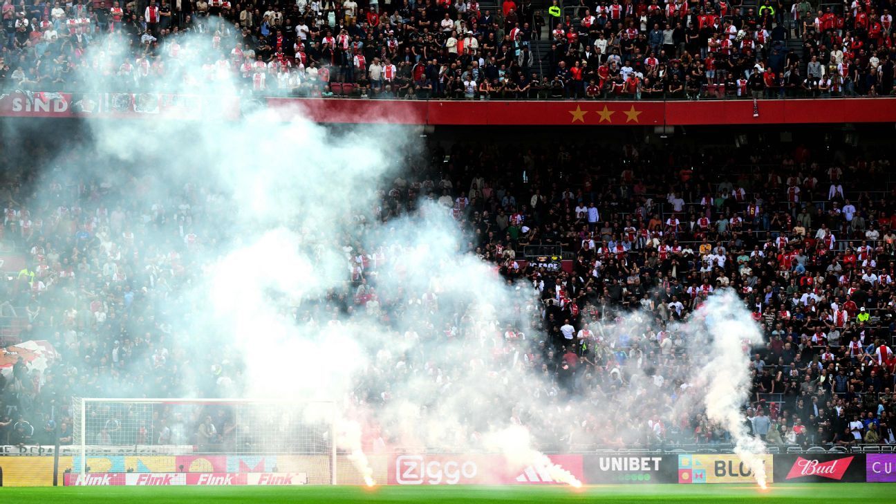 Fans paid no heed as the club displayed the message "Lighting of fireworks is prohibited" on the big screen at the Johan Cruyff Arena in Amsterdam.