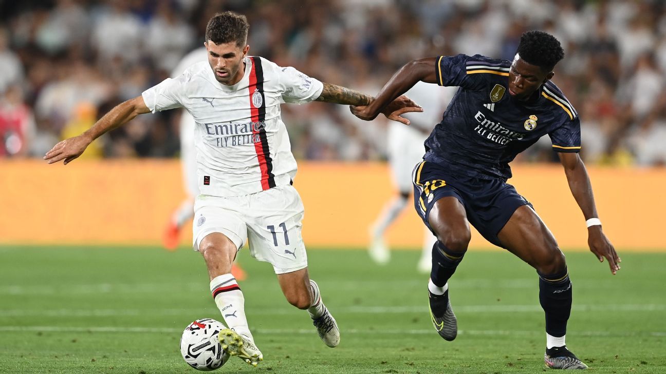 Christian Pulisic was named in the starting XI for AC Milan in a preseason loss to Real Madrid at the Rose Bowl in Pasadena, California, on Sunday night.