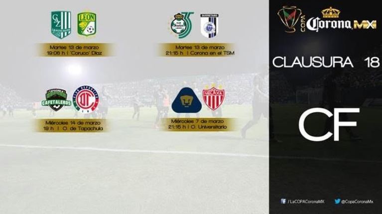 Los ganadores entre Santos-Querétaro y Pumas-Necaxa se enfrentarán en semifinales, mientras que la otra llave se definirá entre Cafetaleros-Toluca y Zacatepec-León.