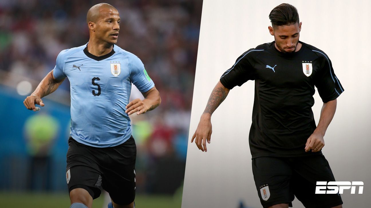 Midfielder Carlos Sanchez and forward Jonathan Urretaviscaya are part of coach Oscar Washington Tabarez's squad, which will face France in the prelude to the semifinals.