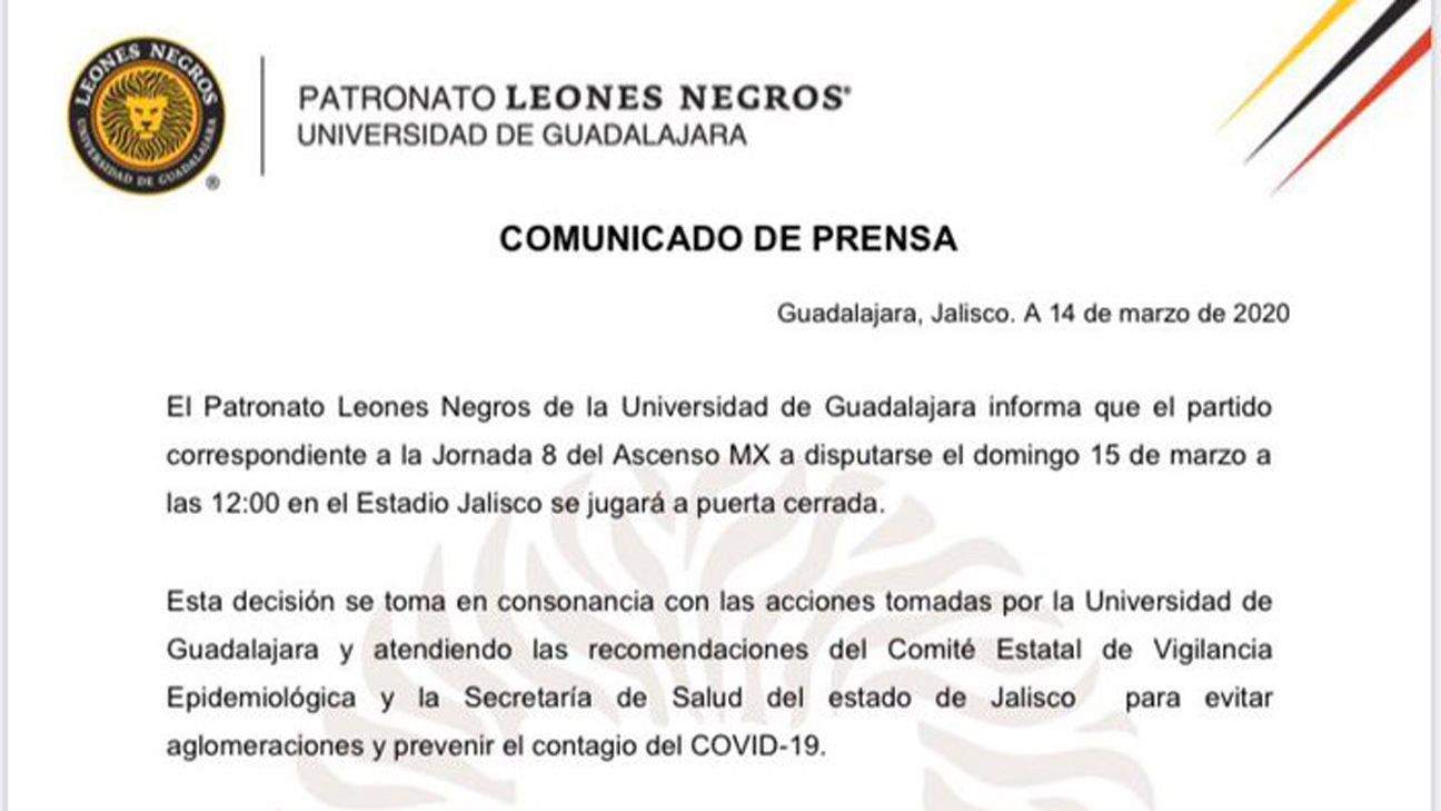 — Leones Negros UdeG (@LeonesNegrosCF) March 14, 2020