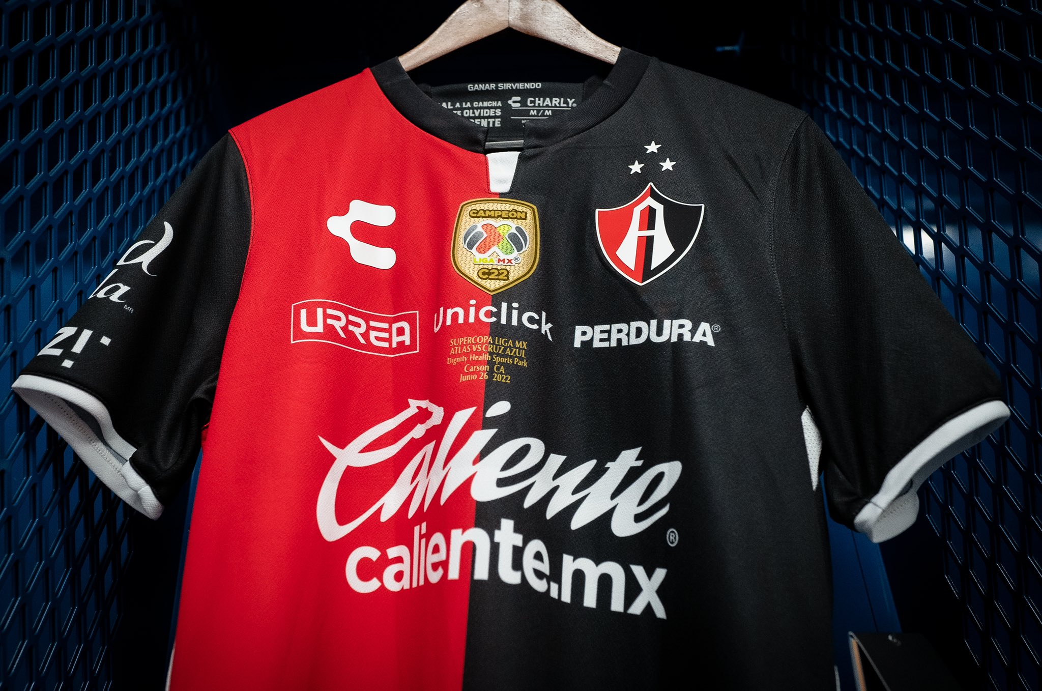 Con el parche de campeón, la camiseta que usará hoy Atlas para enfrentar a Cruz Azul.