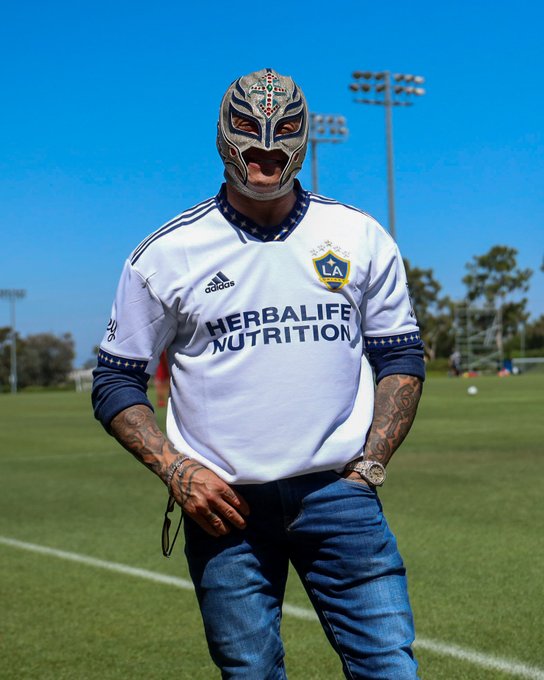 El popular ‘Rey Misterio’ visitó a los jugadores de LA Galaxy durante el último entrenamiento.