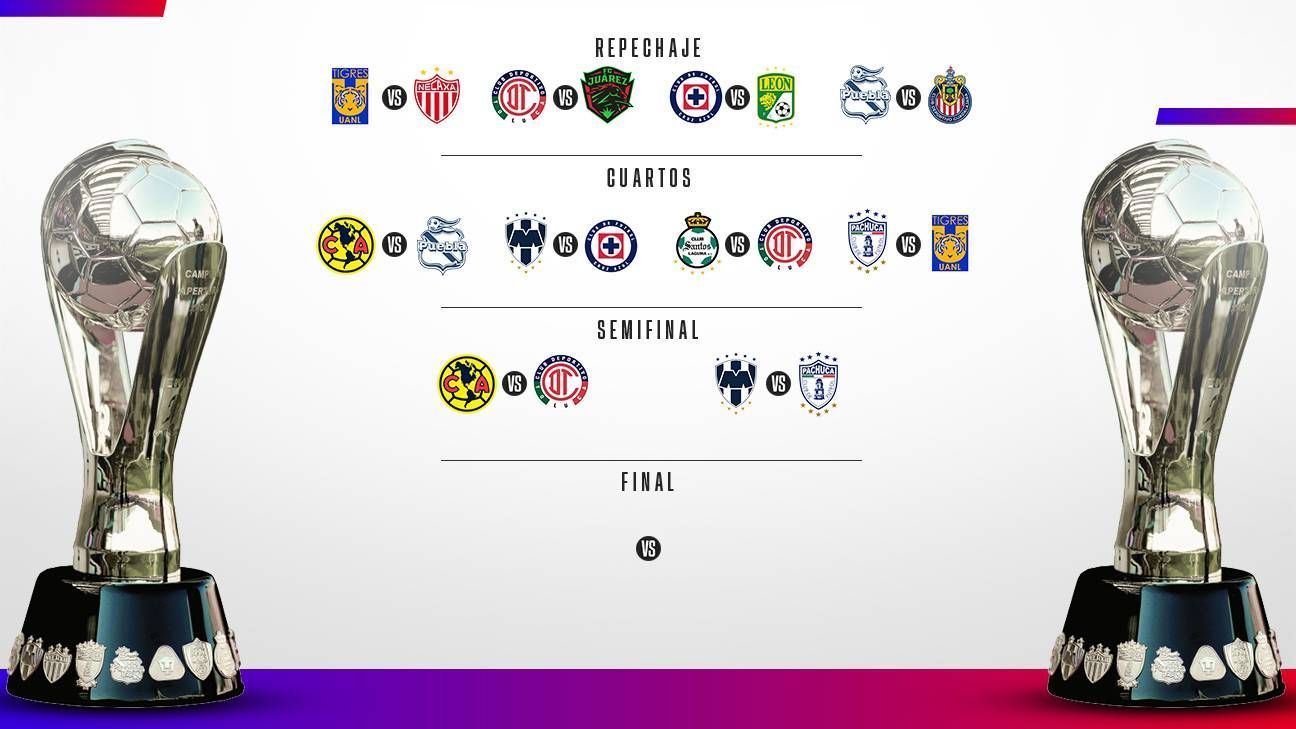 Ahora, en la primera llave, América (líder general) se medirá al Toluca con el primer partido en el Estadio Nemesio Díez de la capital mexiquense y la vuelta en el Estadio Azteca.