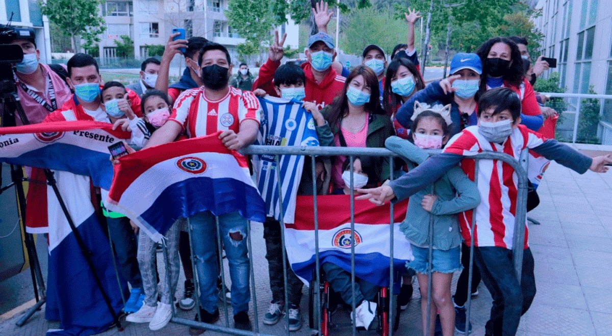 Un reducido grupo de hinchas de Paraguay se acercaron al hotel de concentración de Santiago para mostrarle su apoyo a la 'Albirroja'.