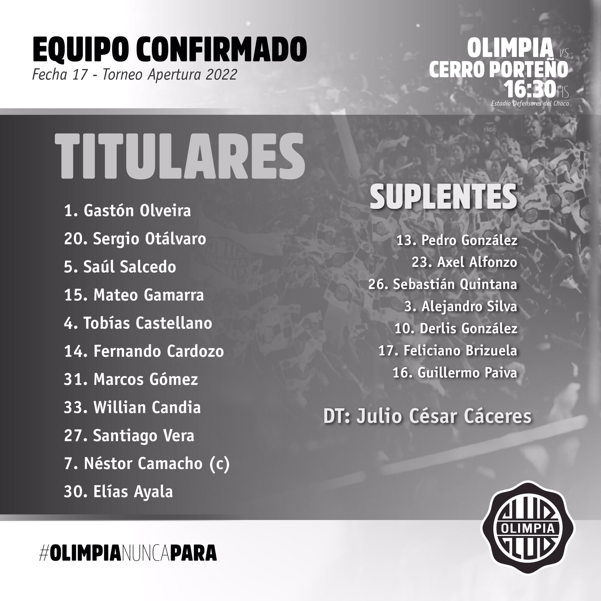 ¡ALINEACIÓN OFICIAL DE OLIMPIA!