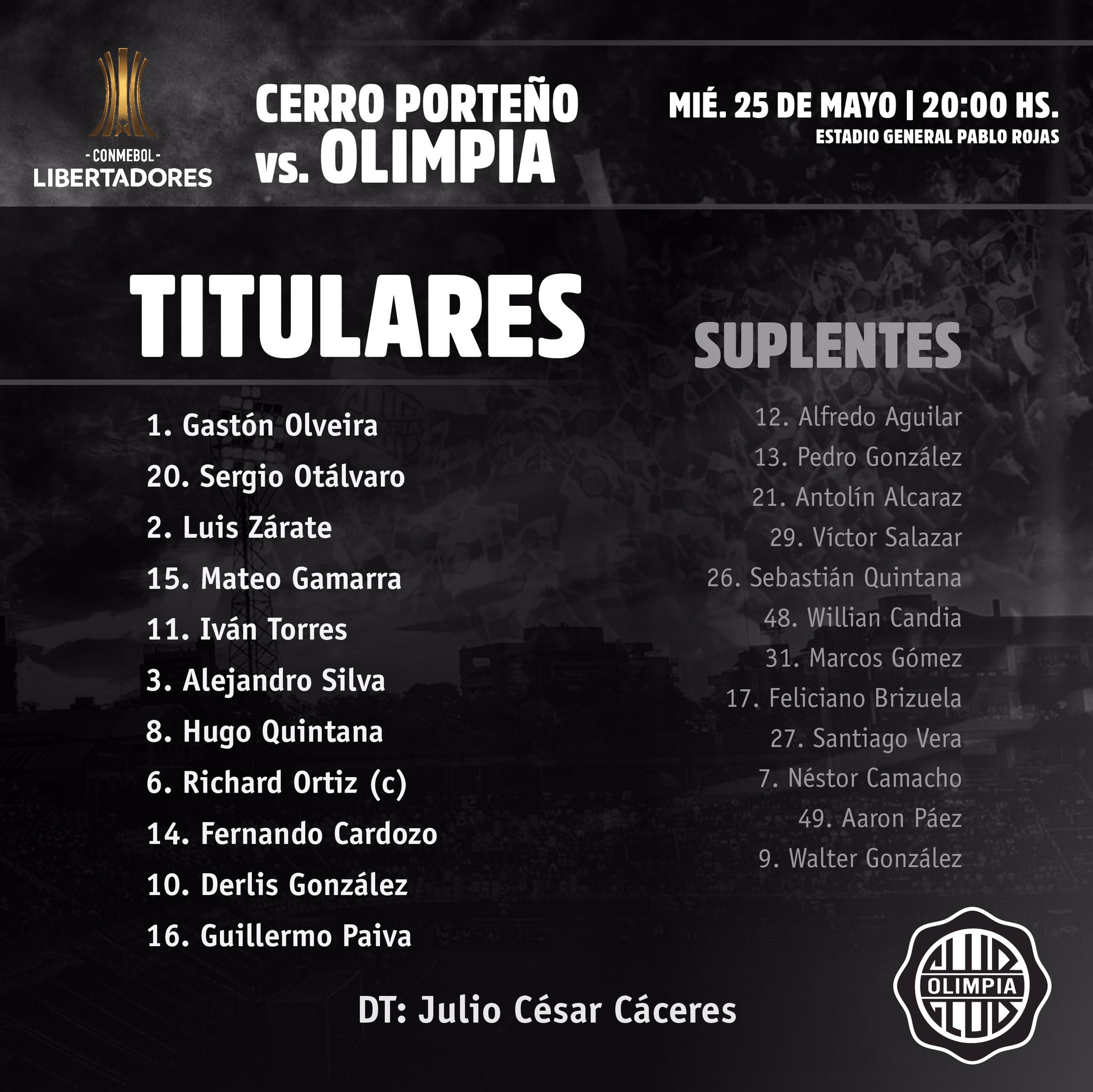 ALINEACIÓN CONFIRMADA DE OLIMPIA
