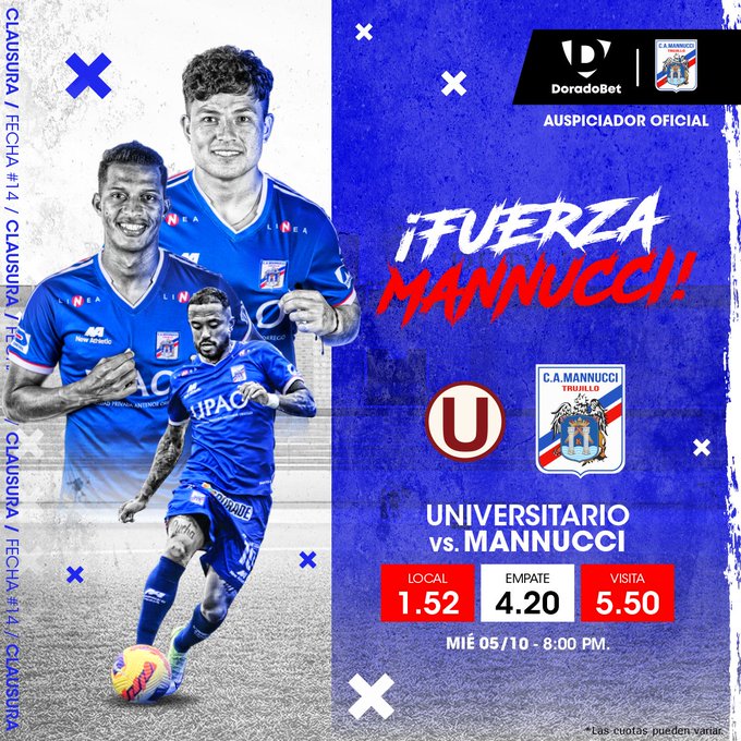 Según las casas de apuestas, Universitario es favorito para derrotar a Mannucci.