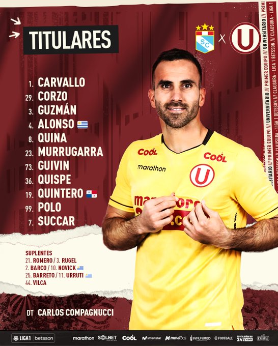 • Universitario: José Carvallo; Aldo Corzo, Piero Guzmán, Federico Alonso, Nelinho Quina; Jorge Murrugarra, Piero Quispe, Alberto Quintero, Andy Polo, Hernán Novick; Alexander Succar.