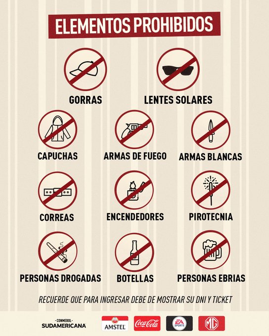 Elementos prohibidos para ingresar al estadio.