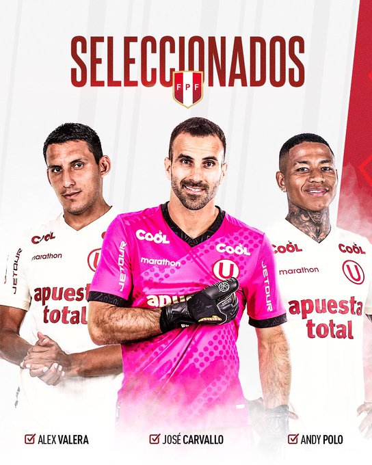 José Carvallo, Andy Polo y Alex Valera fueron convocados a la selección peruana.