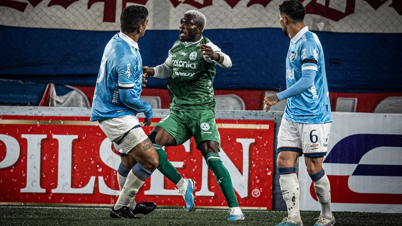 Ebere peleó una pelota contra Polenta en la que el árbitro sancionó falta del delantero nigeriano. En ese instante, el capitán de Nacional tiró del brazo de Ebere, que se molestó por la actitud, y quedaron cara a cara generando un tumulto. El árbitro Gustavo Tejera amonestó a ambos jugadores.