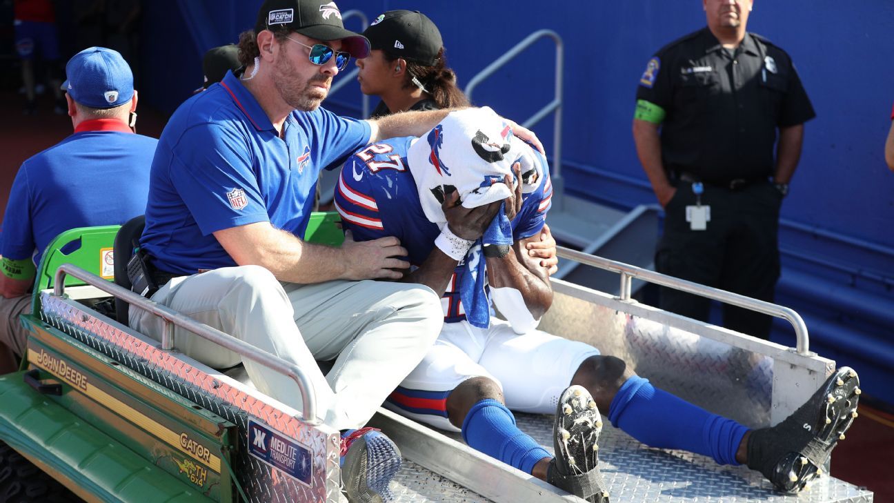 White fue atendido por el personal y arrojó su casco con frustración. Toda la banca de los Bills lo rodeó antes de que lo llevaran al vestuario.