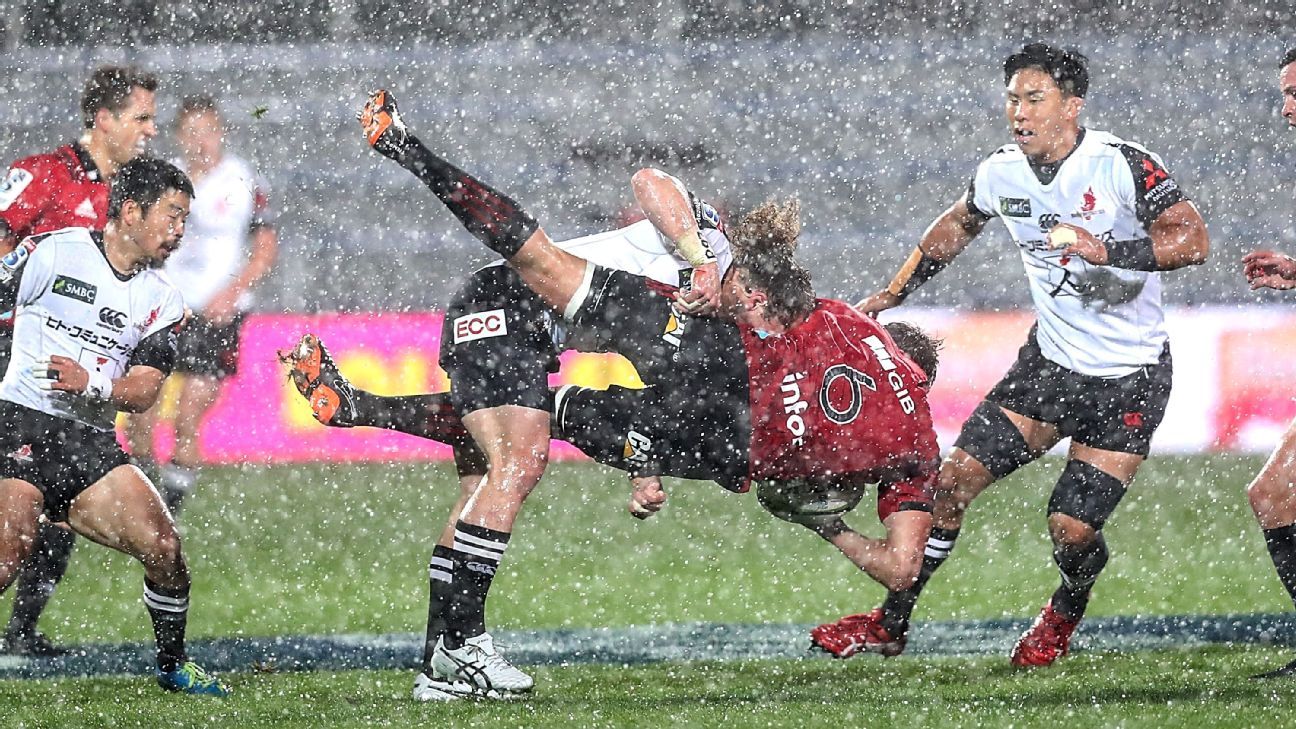 Los de Christchurch, bajo una lluvia torrencial, sacó adelante y con bonus un partido que se le había complicado en la etapa inicial. Ryan Crotty se lució con un doblete, y también se sumaron Todd, Mataele y Stratton. Regresaron Israel Dagg y Owen Franks en los dueños de casa. Little marcó la única conquista para los asiáticos.
