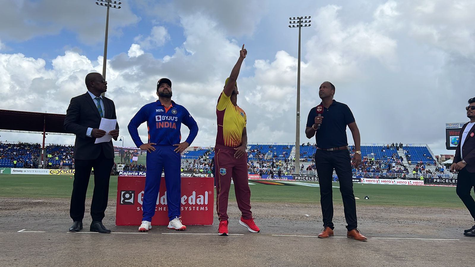 Toss time!!! Nicholas Pooran flicks the coin and wins the toss. West Indies will bowl first against India.