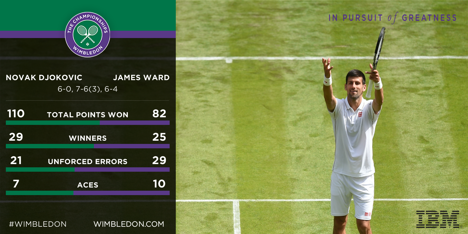 Novak Djokovic inició este lunes la defensa del título y la conquista de su cuarto Wimbledon con un triunfo ante el británico James Ward, invitado especial, por 6-0, 7-6 (3) y 6-4.