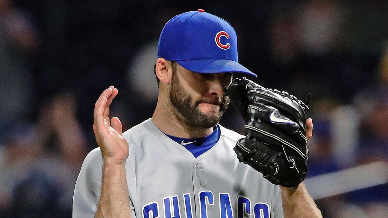 The Cubs are taking a day-to-day approach with the injury. Justin Wilson was called on in the ninth inning to protect a 3-2 lead in Game 1 of Tuesday's doubleheader, but he allowed two earned runs on two hits and a walk to blow the save in a 4-3 loss.