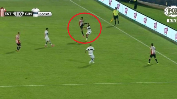 Fue a los 10 minutos del segundo tiempo. La infracción pareció corresponder más a una escena de karate que a una de fútbol.