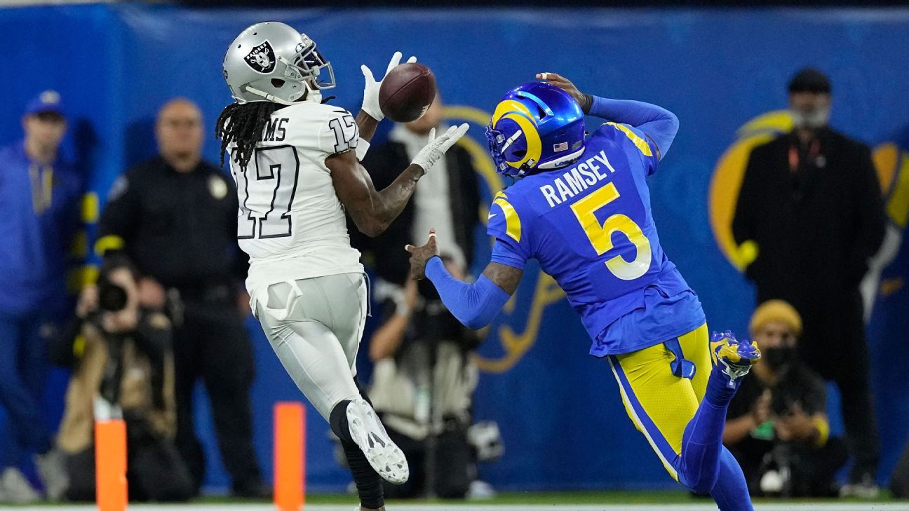 The acknowledgement came after wide receiver Davante Adams caught a 32-yard pass over Ramsey on the third play of the game, drawing a defensive pass interference penalty. Adams made the catch one-handed with Ramsey draped over him. But despite allowing two big plays to Adams in the first half, the Raiders' star receiver finished with only three catches for 71 yards on seven targets.