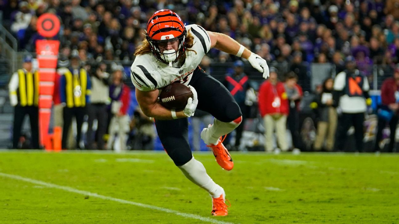 Mitchell Wilcox is expected to start in place of Hurst. This season, Wilcox has 11 catches for 104 yards and one touchdown. The score in last week's win over the Tampa Bay Buccaneers was Wilcox's first career touchdown. Cincinnati will also be without defensive end Sam Hubbard. He did not practice all week after he suffered a left calf injury in the first half against Tampa Bay.