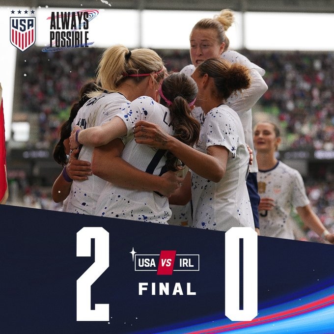 La selección de Estados Unidos de derrotó a la de Irlanda por 2-0 en un partido ensombrecido por la lesión de Mallory Swanson a pocos meses del inicio de la Copa Mundial Femenina.